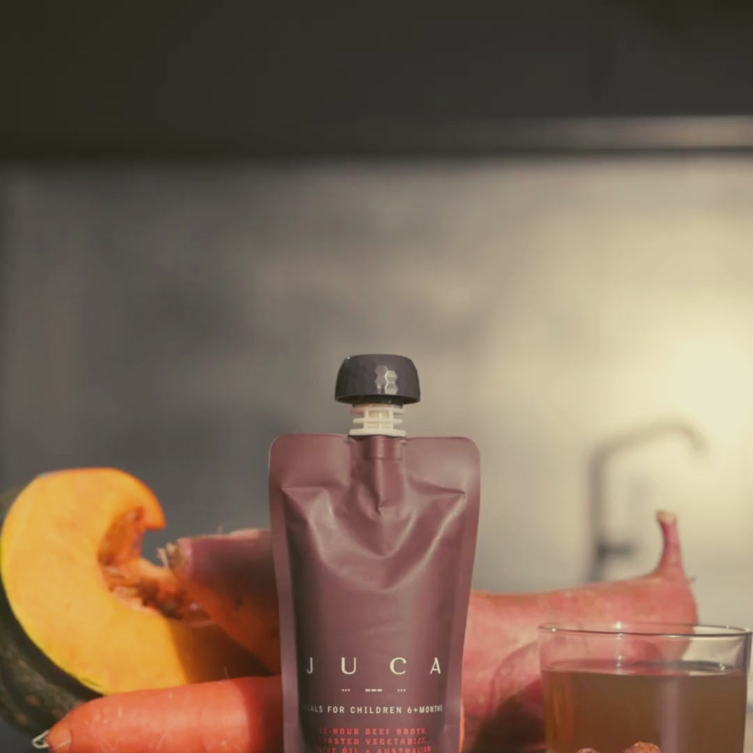 Indulge your baby with the comfort of our sumptuous 12-hour beef broth, infused with a medley of antioxidant-rich roasted vegetables and a drizzle of extra virgin olive oil delivering essential monounsaturated fats. The Australian native bush tomato imparts a refined tang, elevating the taste profile.